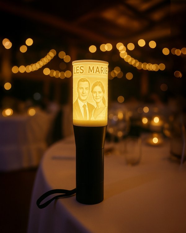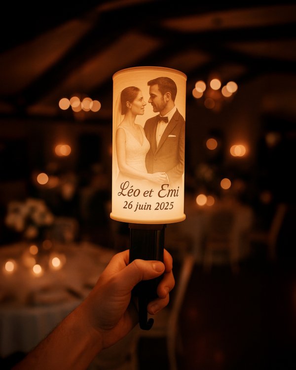 Chaque lampe est imprimée en 3D avec votre photo, vos prénoms et la date de votre choix.