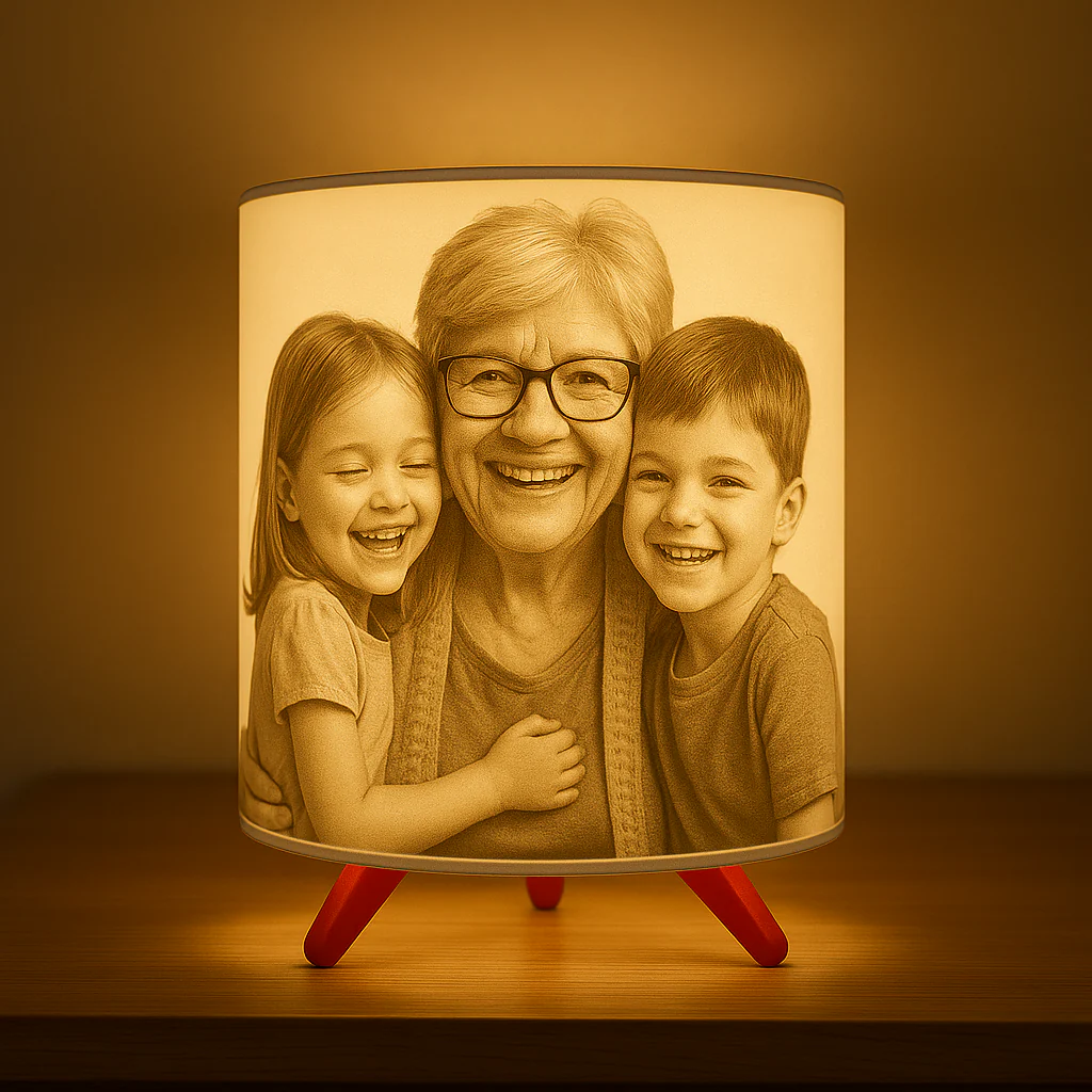 La lampe mesure 15cm x 15cm. Le socle en bois mesure 10cm x 10cm. La lampe est en plastique PLA biodégradable et le socle en bois. La photo est gravée/imprimée sur la lampe. Vous pouvez également personnaliser le socle avec un court message.